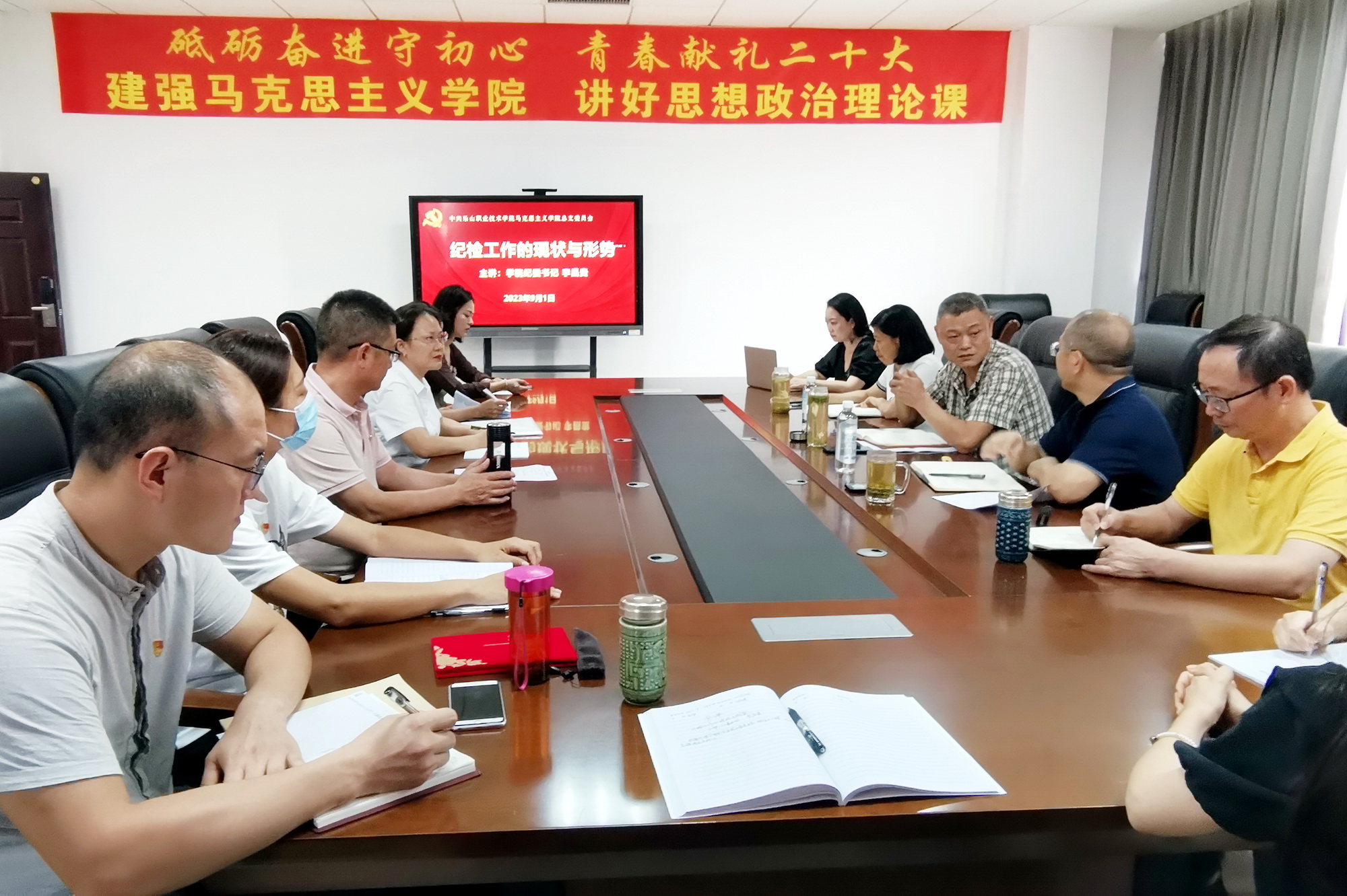2023年9月1日下午,学校党委委员、纪委书记李昌贵在1号教研楼410会议室为马克思主义学院党总支全体党员上党课。党课由马克思主义学院党总支书记郑平主持,全体党员共同聆听学习。