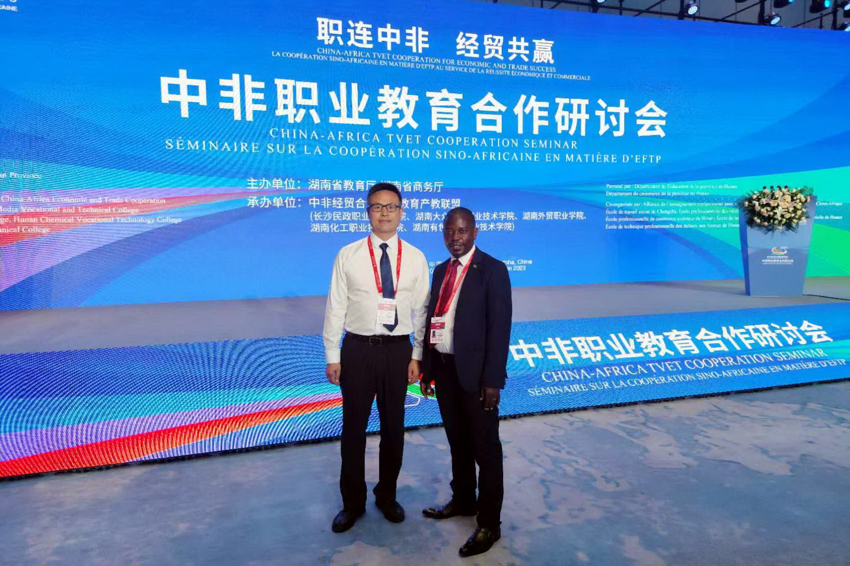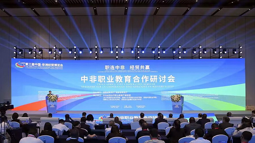 2023年6月30日,第三届中国-非洲经贸博览会主题活动“中非职业教育合作研讨会”在湖南长沙国际会议中心举办,学校新能源与材料学院院长崔明现博士受邀参加研讨会。学校的“走出去”办学案例入选此次研讨会典型案例,并在会议展示区展示。