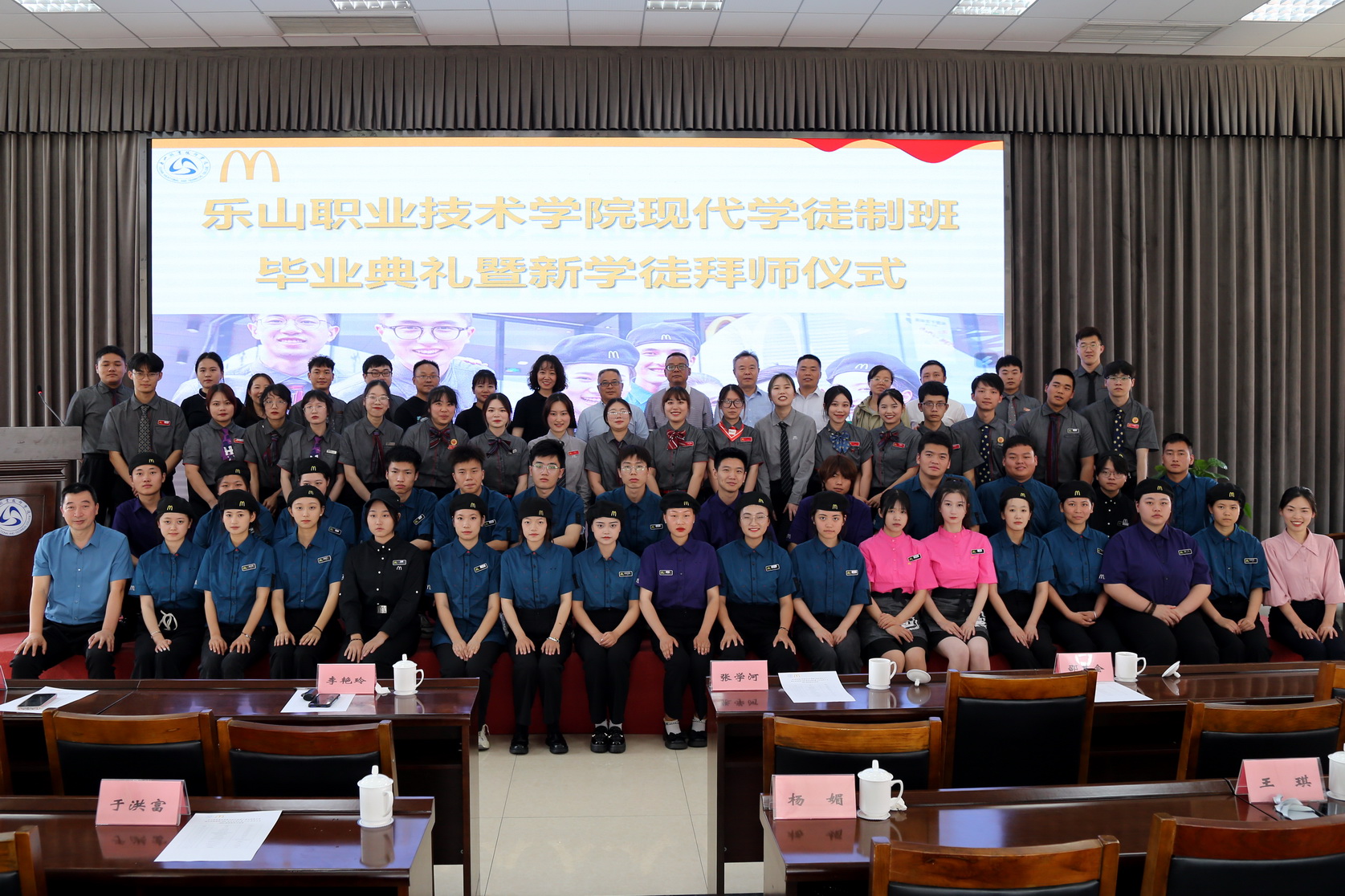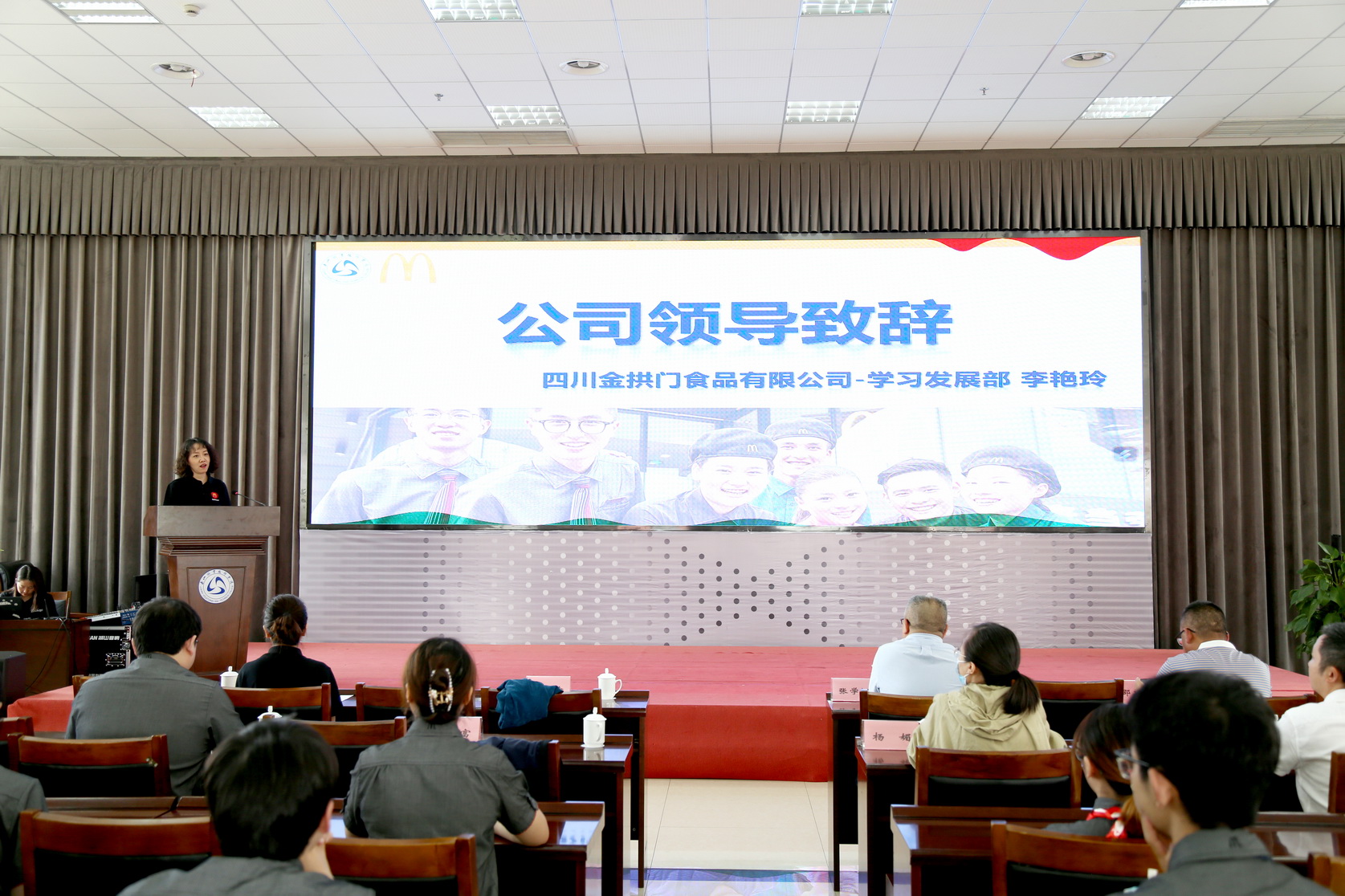 2023年5月23日下午,sunbet申搏官方网站数字经济与管理学院在学术交流中心3004会议室隆重举行第三届麦当劳现代学徒制班毕业典礼暨新学徒拜师仪式。四川金拱门食品有限公司学习发展部经理李艳玲、运营经理冯之蓓等企业领导和师傅,sunbet申搏官方网站党委委员、副校长张学河,数字经济与管理学院相关领导及工商企业管理专业现代学徒制班全体师生参加仪式。