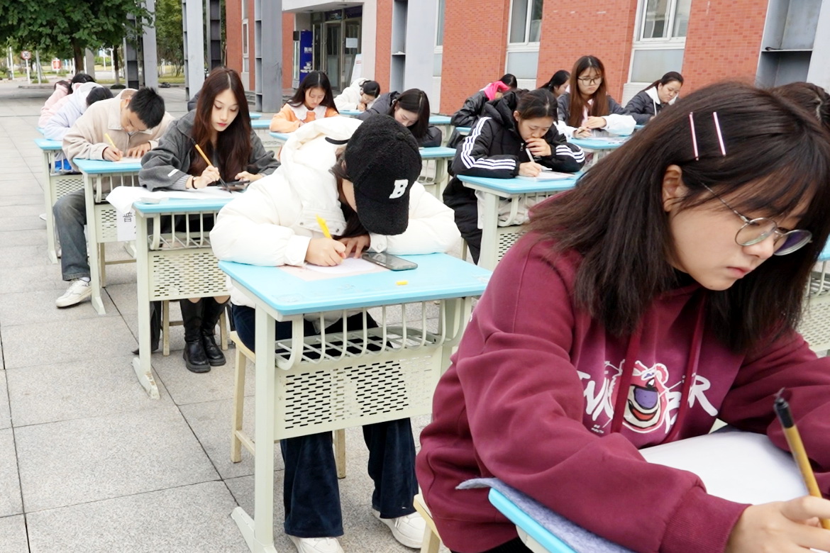 比赛现场,选手们挥毫泼墨、笔走龙蛇,把对家乡的深情厚谊、对祖国的热爱之情,以及坚定的进取精神融入笔墨之间。一幅幅作品,有的以遒劲有力的笔触书写金句,有的则以细腻的笔触描绘壮丽画卷,充分展现了同学们的艺术才华和对生活的深刻理解与感悟。