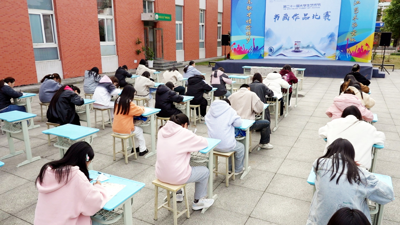 本次活动由校团委主办,若水墨韵书画社承办,比赛分毛笔、硬笔和绘画三大类,自10月发布征稿以来,吸引了爱好书画的同学们积极参与,共收到书画作品750余件。