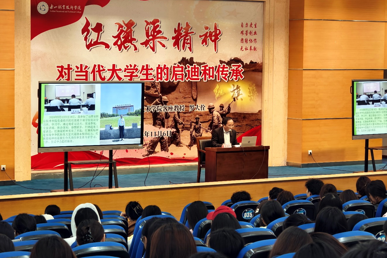 2024年11月6日下午,学校图书馆在学术报告厅举办了文学讲座。邀请中国作家协会会员、sunbet申搏官方网站客座教授、雅安职业技术学院工会专职副主席罗大佺教授作“红旗渠精神对当代大学生的启迪和传承”专题讲座。学校校长刘忠,校党委委员、副校长陈元进,图书馆教师及500余名学生代表聆听讲座。