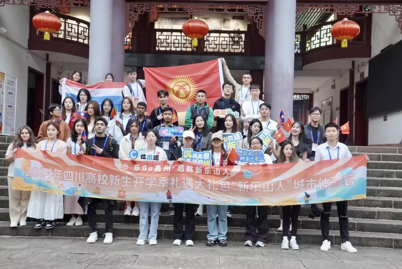 10月13日,学校的74名来华留学生与国内大一新生代表共同迎来了一个特别的活动——“乐GO嘉州·启航新乐山人2024年四川高校新生开学季礼遇大礼包‘新乐山人’城市体验官活动”。此次活动由乐山市人民政府主办,乐山市商务局、市文化广播电视和旅游局、市教育局承办,学校团委与国际合作交流处积极组织留学生参与活动,他们来自俄罗斯、孟加拉国、老挝、柬埔寨、吉尔吉斯斯坦、越南、泰国等12个国家。