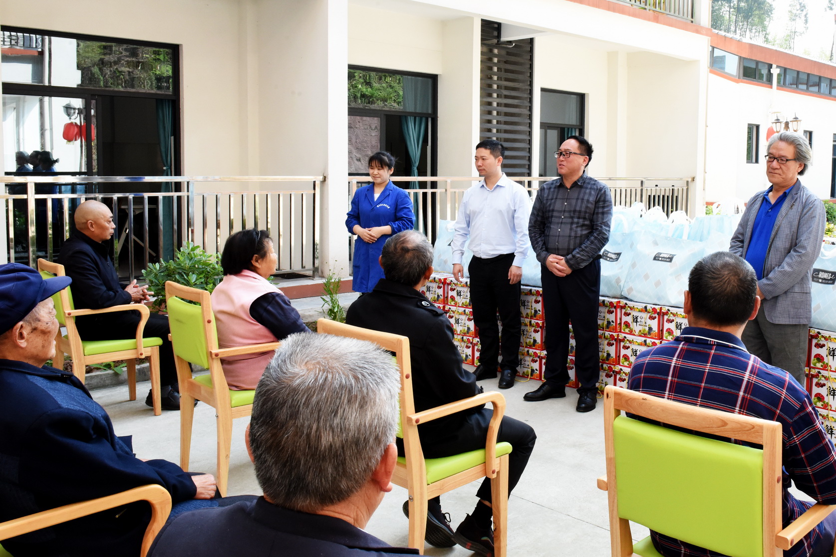 成定彬详细询问老人们的生活情况和身体状况,表达对他们的诚挚关怀和问候,并送上了凉被、苹果等慰问品。在认真听取敬老院目前存在的困难和问题后,成定彬指出要充分发挥学校人才、技能优势,从党建、感恩教育、康养服务、健康宣讲、心理疏导等方面进行全方位帮扶,进一步增强老人们的获得感、幸福感、安全感。