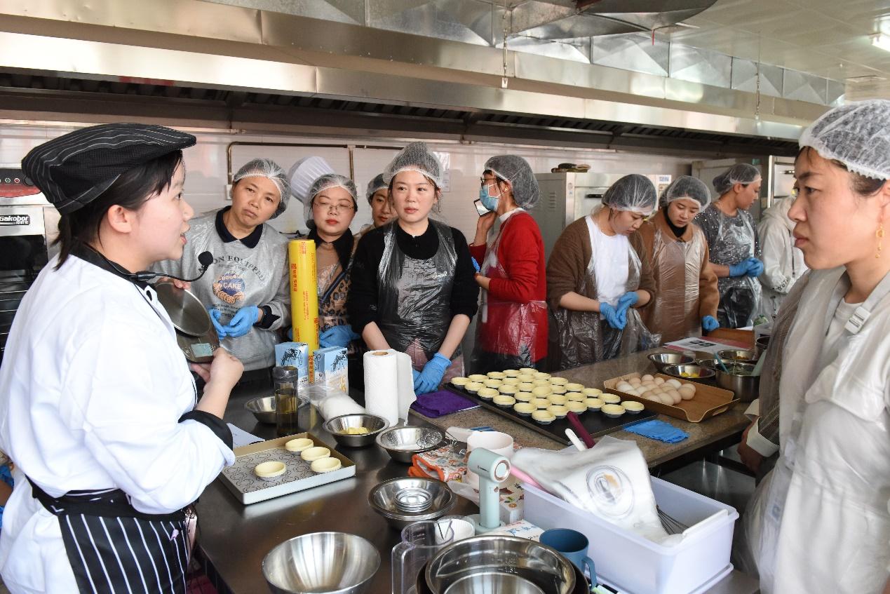 文化旅游学院和校企合作单位四川巴蜀好利食品有限公司共同在烹饪实训中心为学院女教职工开展糕点烘焙培训。实训中心黃静老师就食材的配比、制作的方法等进行了详细讲解并现场演示,女教职工们体会着自己亲手制作蛋糕的乐趣。老师们的烘焙作品出炉后,大家纷纷拍照留念,现场充满了欢声笑语,弥漫着幸福的味道。
