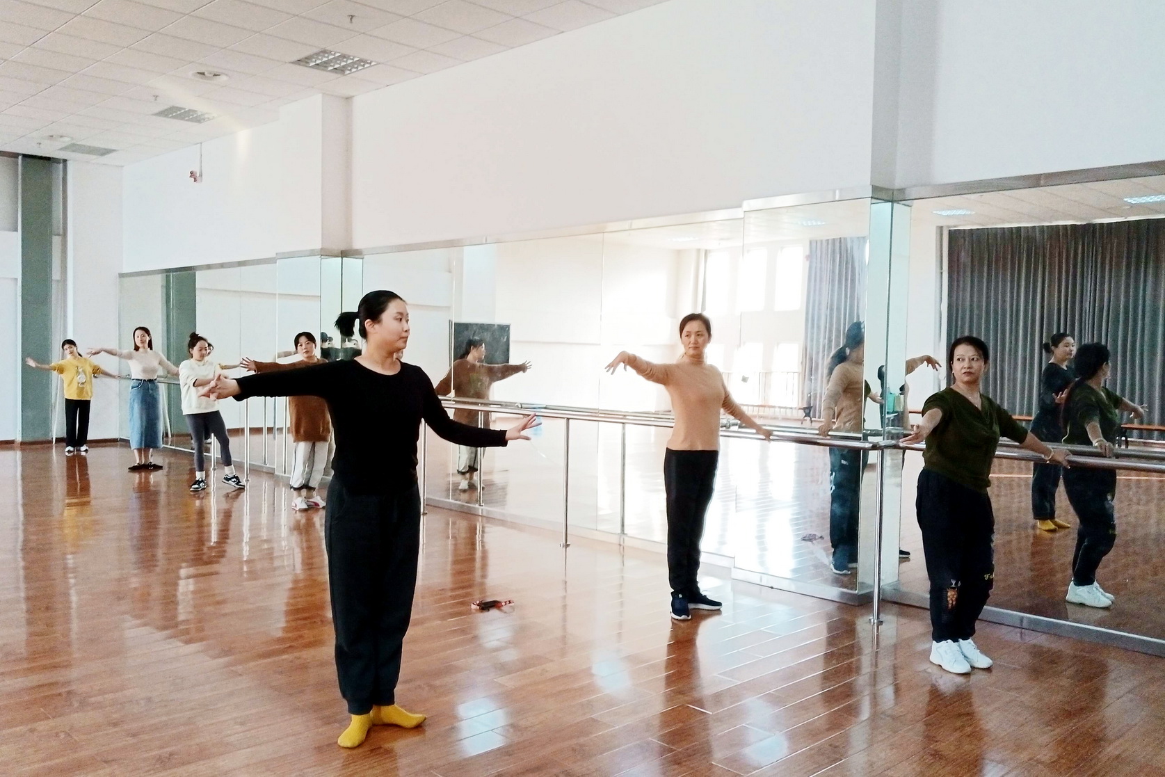 本次舞蹈培训班采取理论讲课和现场排练相结合的形式,特别聘请了毕业于四川省舞蹈学校的国家二级演员王思竹老师教学,教学以民族舞、古典舞为主,课程从基本功、花式舞步等简便易学的舞蹈动作开始,练习中采用快慢结合、逐步到完整的动作示范和轻快的音乐练习。学员们充满热情,认真跟随老师学习一招一式,舞蹈动作整齐划一,舞蹈室内充满了欢声笑语。