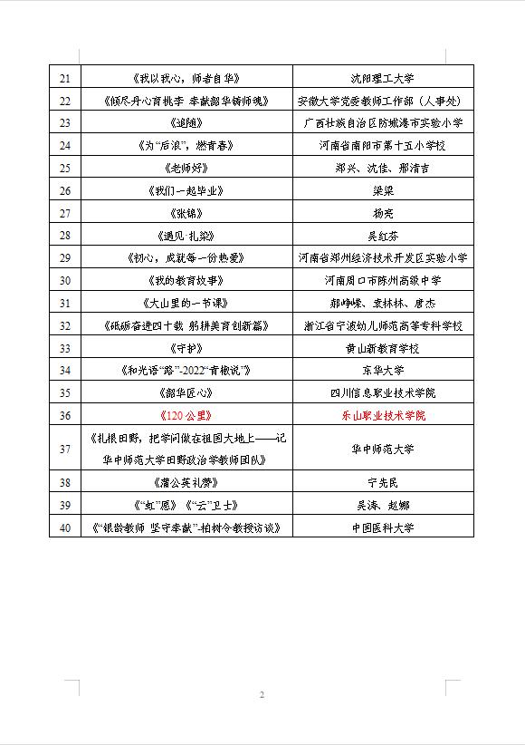 本次活动是教育部联合中国教师发展基金会、中国教育发展基金会、中国教育电视台面向全社会开展的征集,共征集到近5000部作品。经技术筛选、专家审议,最终遴选出40部优胜作品、110部入围作品。sunbet申搏官方网站报送作品《120公里》荣获优胜奖。