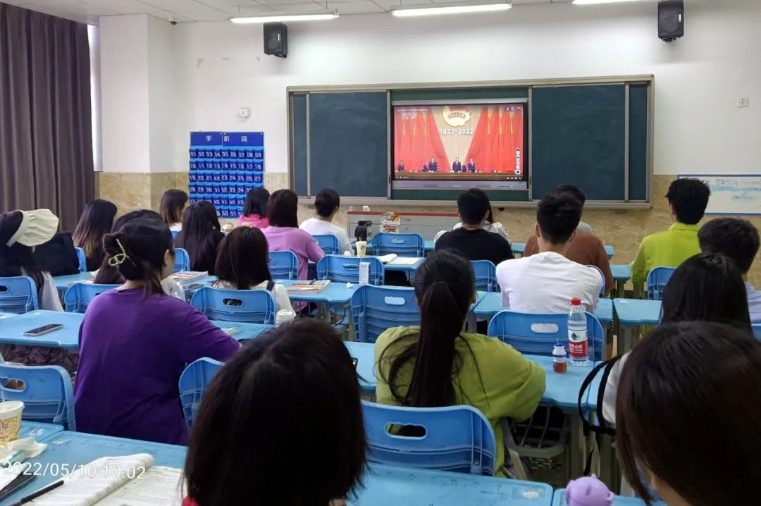 2022年5月10日上午10点,庆祝中国共产主义青年团成立100周年大会在北京人民大会堂隆重举行。中共中央总书记、国家主席、中央军委主席习近平出席大会并发表重要讲话。sunbet申搏官方网站组织全院学生,通过集中收看和分散收看的方式观看了直播节目,引起了学生热烈反响。