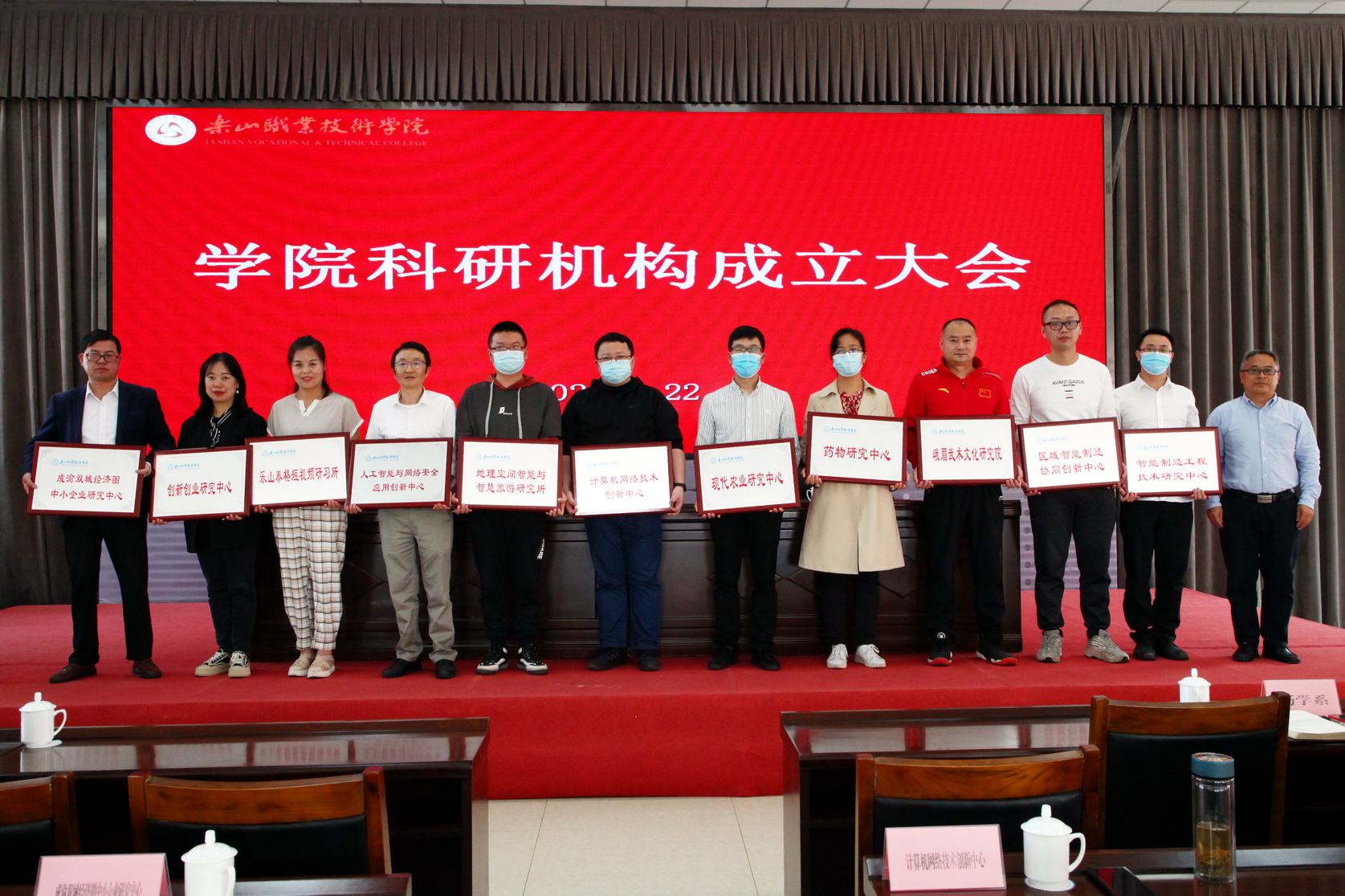 会上,刘忠、张学河分别为5个市级科研机构和25个院级科研机构授牌。