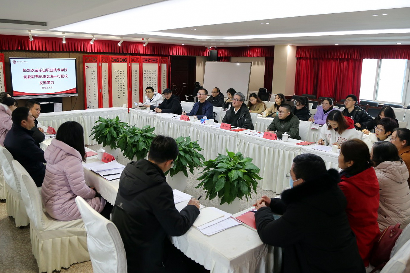 为进一步对标竞进,全面提高马克思主义学院教师教育教学能力,深化“思政课程”和“课程思政”改革创新,努力构建一支高水平“双师型”教师队伍,1月5日上午,学院党委副书记陈芝海带队到成都职业技术学院交流学习。学院宣传部部长钟翼、马克思主义学院副院长徐志红和14名马院教师参加了考察交流活动。成都职业技术学院党委副书记张开江、宣传部部长李文江、教务处副处长刘明勇、宣传部副部长兼马克思主义学院党支部书记阚燕、马克思主义学院副院长欧美强以及4教师代表参加了交流座谈。座谈会由张开江主持。