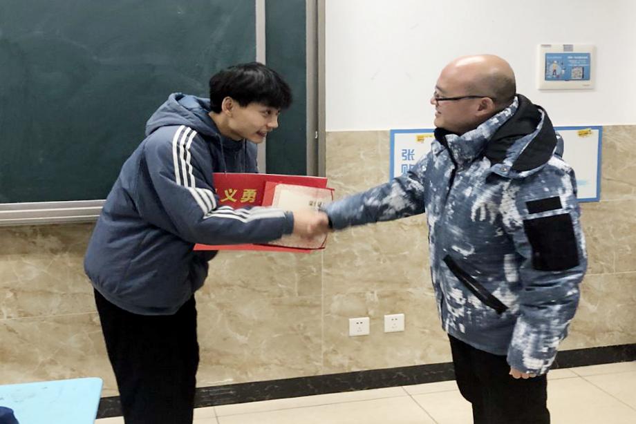 2021年12月27日晚,旅游系烹调工艺与营养21级1班夏伟豪同学被学院授予了“sunbet申搏官方网站2021年见义勇为奖”荣誉证书,并接受了奖金1000元,在场师生用最热烈的掌声向夏伟豪同学表示祝贺。