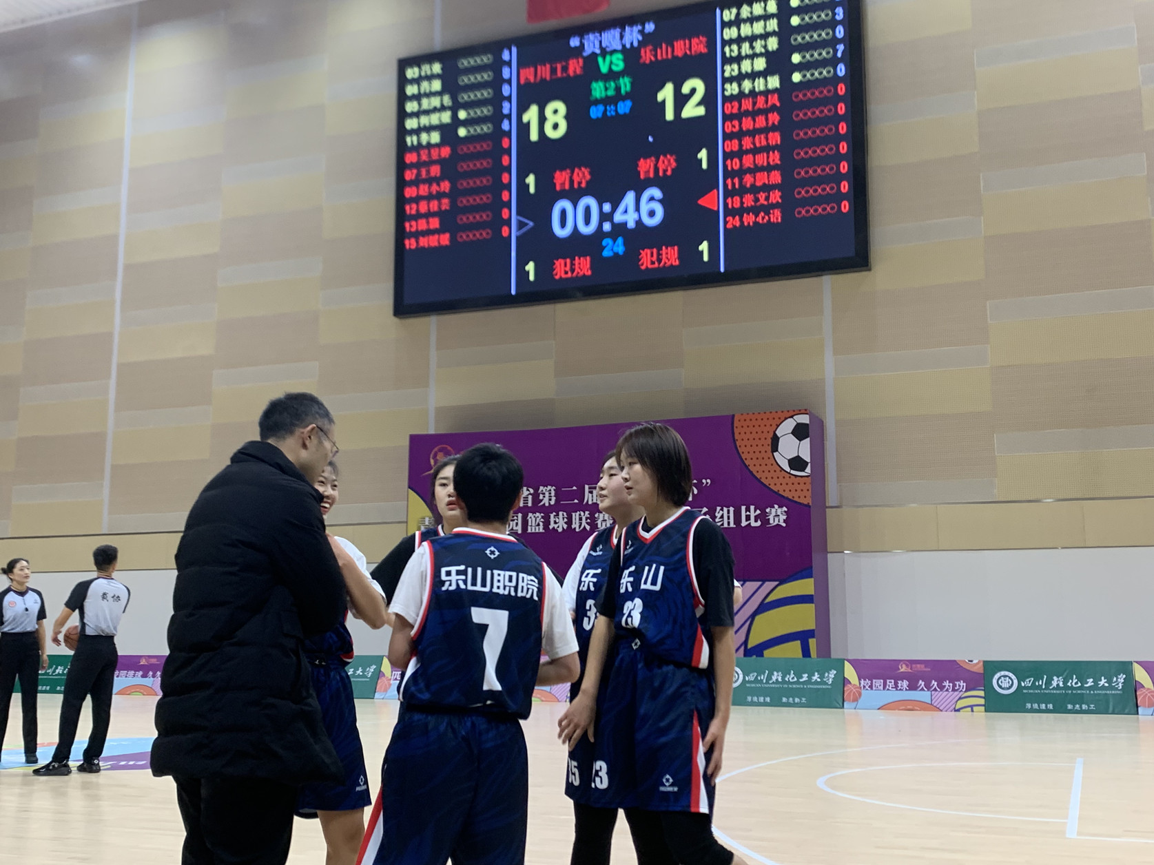 小组赛阶段,sunbet申搏官方网站女子篮球队与四川工程职业学院、四川水利职业技术学院、雅安职业技术学院、四川托普职业技术学院分在K组。在连胜两场后,就迎来了上届第四名四川托普职业技术学院。面对实力强劲的对手,比赛前三节一直处于被动,多名队员拼到抽筋,第四节完全靠顽强的意志坚持下来并最终逆转对手,提前一轮小组出线。小组赛最后一个对手是连续取得四届全国冠军的四川工程职业学院。第一节乐职院女篮采用严密的防守战术,让对方前5分钟一分未得取得完美开局。然而好景不长,乐职院女篮主力球员突发急性腰扭伤无法坚持比赛,场上形势逐渐被动,最终被对方逆转,以3胜1负的战绩排名小组第二进入淘汰赛。在淘汰赛中,乐职院女篮受多名队员伤病困扰,面对P组全胜的成都航空职业学院,以42:58输掉比赛止步16强。