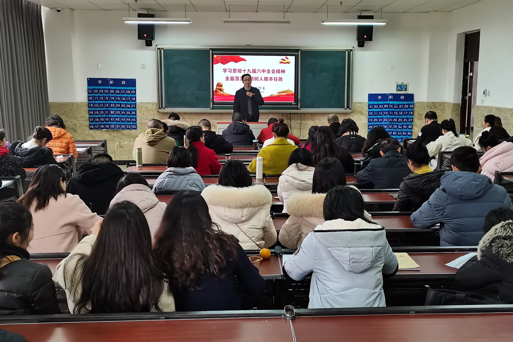 鲍学东以“学习贯彻党的十九届六中全会精神,全面落实立德树人根本任务”为题,深入解读了党的十九届六中全会关于加快建设教育强国的重要精神,指出要从政治上看教育、从民生上抓教育。围绕党的十八大以来党在教育方面的历史性成就和新时代职业教育的新任务新使命,鲍学东重点指出要从五个方面全面落实立德树人根本任务。要坚定不移地把“两个维护”作为学校办学、教师教书的根本原则。坚定不移地践行人民至上理念、努力办好人民满意的教育。坚定不移地服务于中华民族伟大复兴的中国梦。坚定不移地坚持教育的“四个自信”。坚定不移地传承弘扬党的宝贵历史经验,推动职业教育高质量发展。鲍学东强调,职业教育要面向“两个大局”,全体党员教师必须鼓起奋进在新时代新征程上的精气神,坚持工学结合、知行合一的教育教学,为党育人、为国育才!