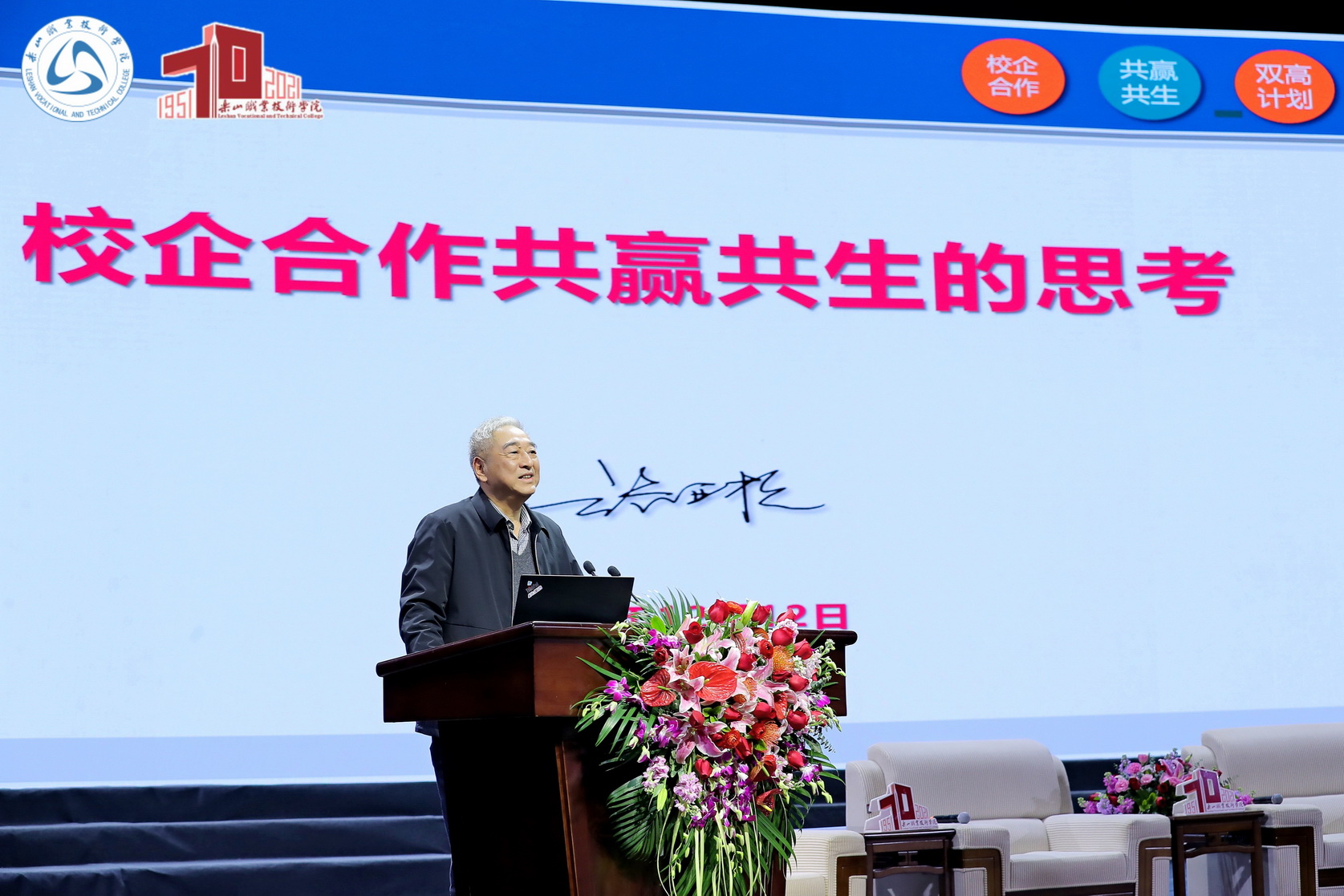 陈芝海对专家学者的到来表示了欢迎,他指出,党的十八大以来,习近平总书记对职业教育改革发展问题作出了一系列的重大判断,重要论述,为我们职业教育指明了方向。国务院也密集出台系列的政策举措,在顶层设计上,出台了一系列国家职业教育相关制度。今年以来,国家大力扶持职业教育发展,从全国职业教育大会的召开,到《中华人民共和国职业教育法》迎来25年来首次大修,再到近日中共中央办公厅、国务院办公厅印发的《关于推动现代职业教育高质量发展的意见》,职业教育领域迎来了一系列政策上的加持。本次论坛是学院办学70周年发展总结系列活动的重要环节,旨在通过专家学者的高端对话,学习真知灼见,启发深度思考,从而以办学70周年为新起点,全面贯彻习近平新时代中国特色社会主义思想,牢记立德树人根本任务,站位大局看教育,尊重规律施教学,瞄准高点办学校,深化政产学研用合作,建成特色鲜明、优势突出的地方性、应用型高水平院校。