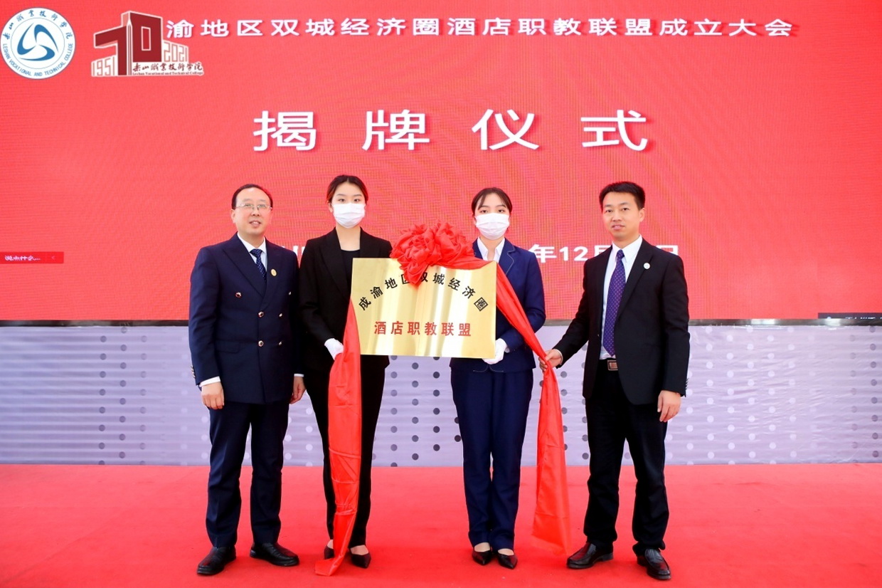 第二阶段会议为“成渝地区双城经济圈酒店职教联盟”成立大会。大会播放了sunbet申搏官方网站办学七十周年成果宣传片,宣读了理事长单位、副理事长单位、理事单位及正副秘书长人选,举行了“成渝地区双城经济圈酒店职教联盟”成立揭牌仪式。