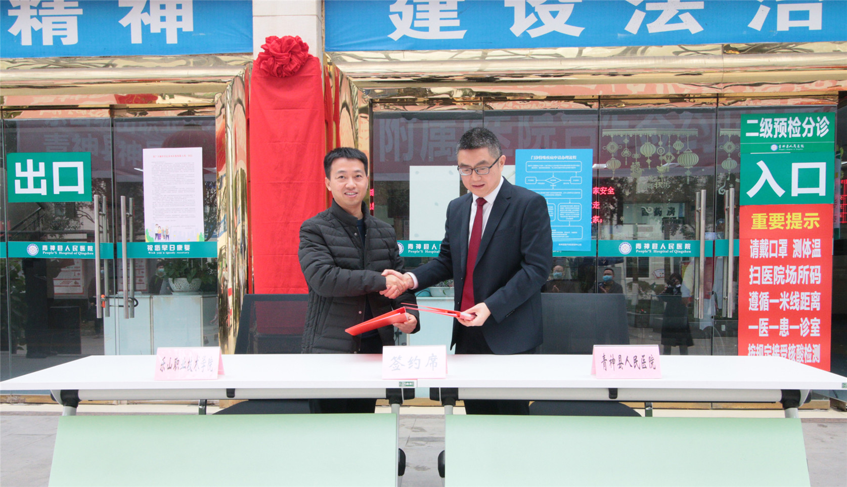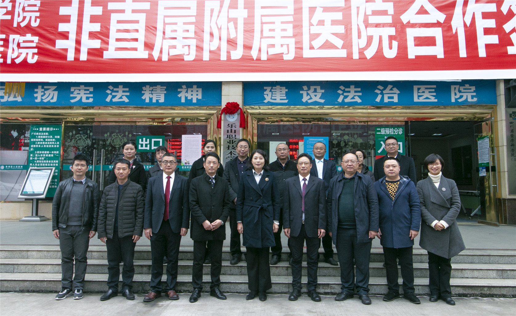 为推动学院和区域行业企业形成命运共同体,本着双方资源共享、互利互惠的原则,2021年12月3日,学院党委书记易群带队一行7人赴青神县人民医院签约“非直属附属医院”并揭牌。