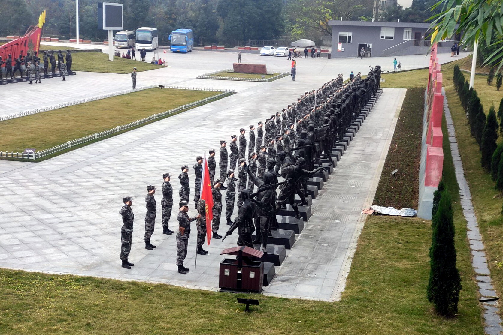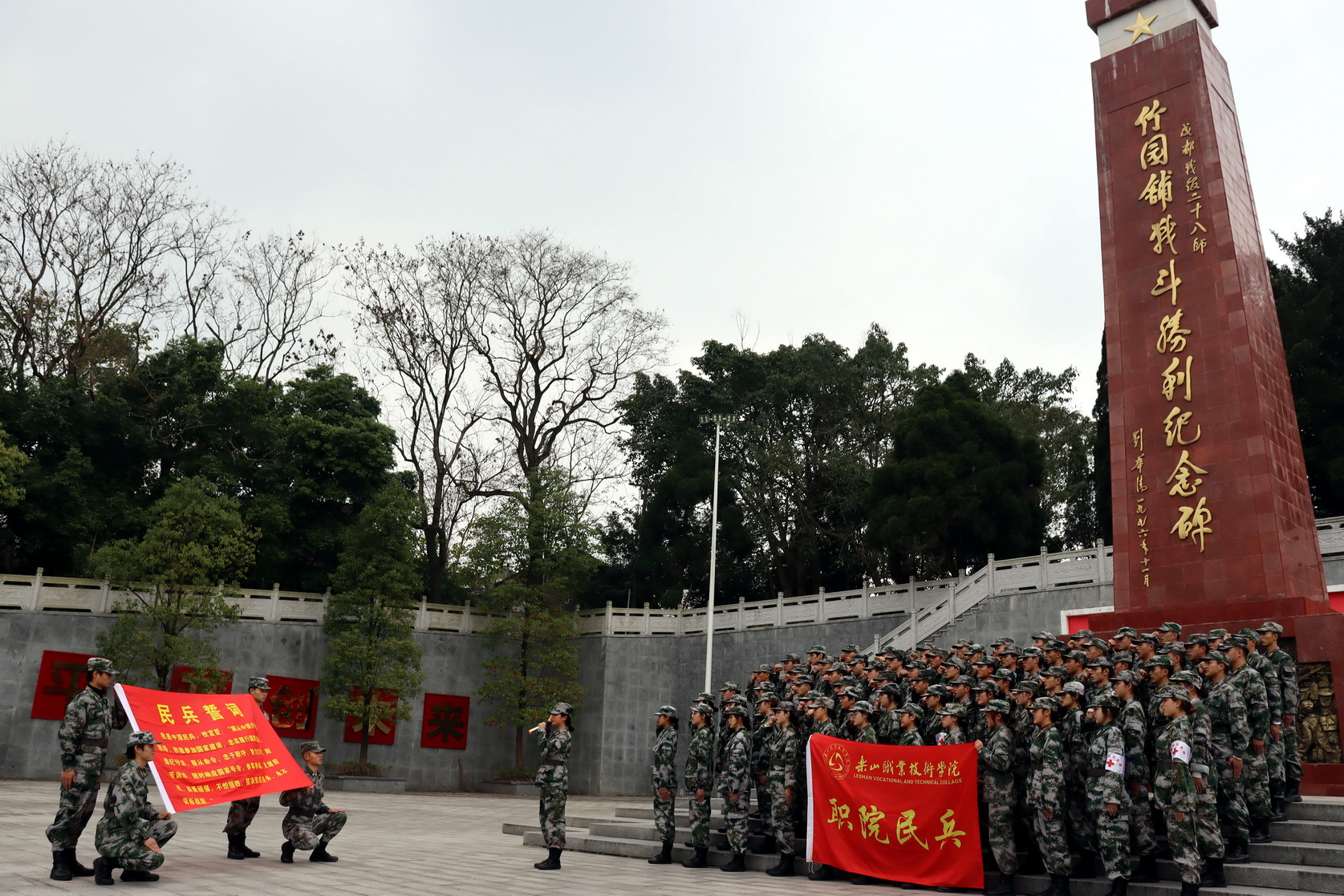 11月28日下午,sunbet申搏官方网站武装部组织民兵到井研县竹园铺战役纪念馆,接受爱国主义教育和红色教育,缅怀革命先辈的丰功伟绩,重温中国共产党艰苦卓绝的奋斗历程,激励民兵继承和发扬党的优良传统和作风。全体民兵在纪念碑前庄严宣誓,尔后瞻仰烈士陵园并默哀三分钟,并在烈士集体雕塑前向烈士致以崇高敬意。