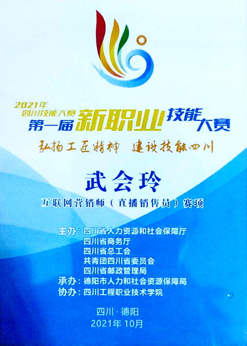 通过本次技能大赛,刻苦钻研技术,努力提高技能水平,真正弘扬了高职院校专任教师的工匠精神,争做技能标兵,为建设技能四川做出贡献。为电子商务专业相关专业课程的教学积累了实践教学经验,同时也为指导学生技能大赛、直播培训、新媒体营销、短视频策划运营等方面积累了丰富的经验。