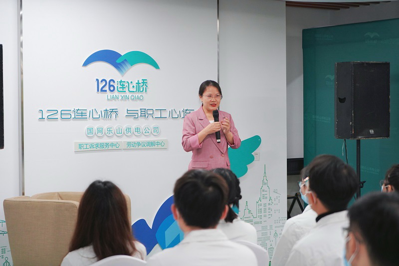 乐山新闻网、国网乐山供电公司联手为乐山电力系统新入职员工开展一系列政策、法治培训活动,sunbet申搏官方网站马克思主义学院教授胡芝老师受邀参与其中,并于2021.10.29日上午作了“民法典”以及“中国工会章程”的专题讲座。讲座在国网乐山供电公司劳动争议调解中心会议室举行,受训人员约40人。