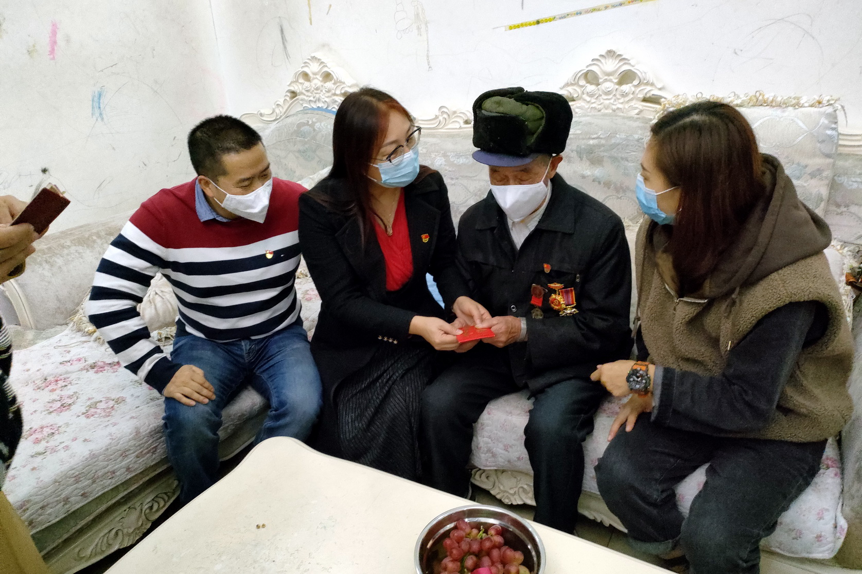 活动的第二项内容是看望抗美援朝退伍英雄许泽林老人。支部一行于当晚7点来到许泽林老人家中,为其献上鲜花和慰问金,感谢老英雄为我们今天的安定幸福生活所做的贡献。许泽林老人精神状态很好,他主动向我们谈起自己的战斗经历。许泽林老人于1951年3月28日晚10点作为15军44师炮兵营的一名志愿军战士进入朝鲜展开对敌作战,为保家卫国在朝鲜整整浴血奋战了三年,直至1954年5月1日才返回祖国。当回忆起自己的战斗岁月时,老人表现得十分轻松,他表示三年中自己多次与死亡擦肩而过,相比牺牲的众多战友,能活着回来实属幸运,所以此生非常知足。而当我们对他当年的奉献表示感谢时,老人突然变得沉重起来,嘴唇颤抖,不停地说最该感谢和被深刻怀念的是那些没有回来的我的战友们,他们才是真正的英雄,没有他们就没有我们的今天。此时老人眼里噙满泪水,而这一幕让在场的同志们为之动容。