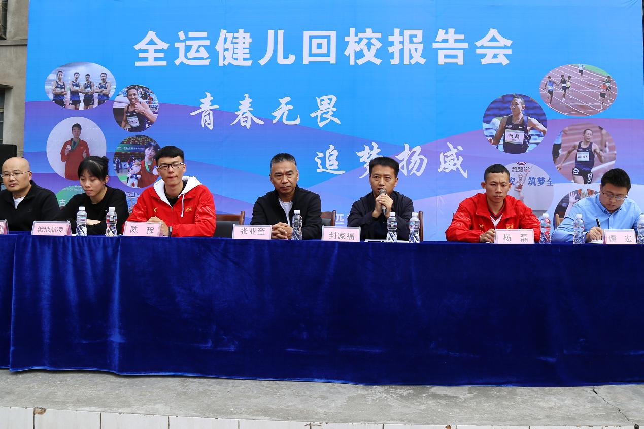 10月11日上午,三名优秀运动员杨磊、陈程和俄地晶凌满载荣誉,回到乐山,回访母校,表达绿叶对根的深情厚谊。