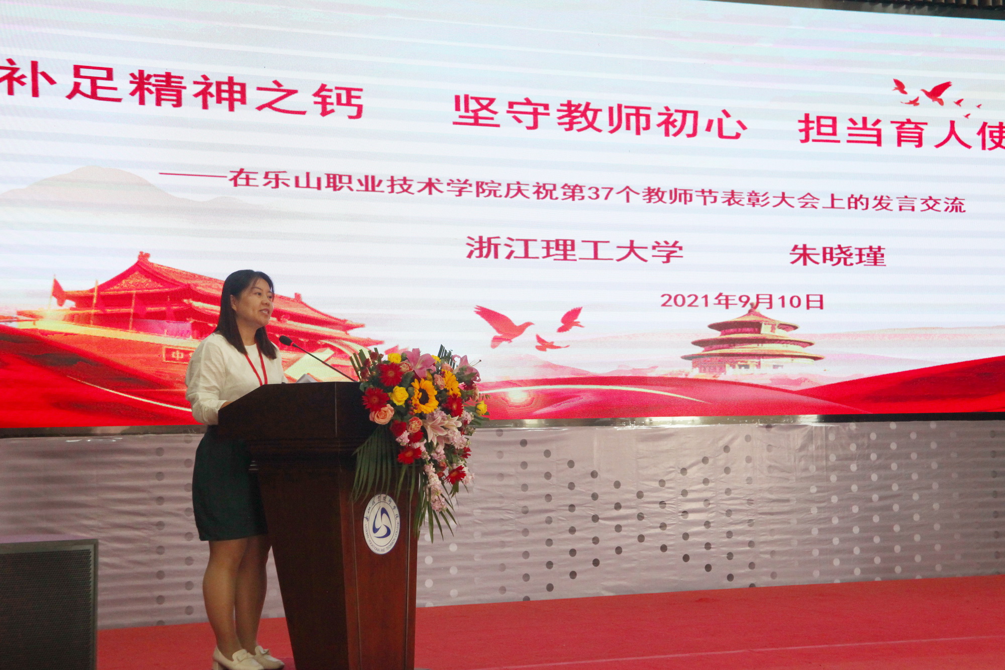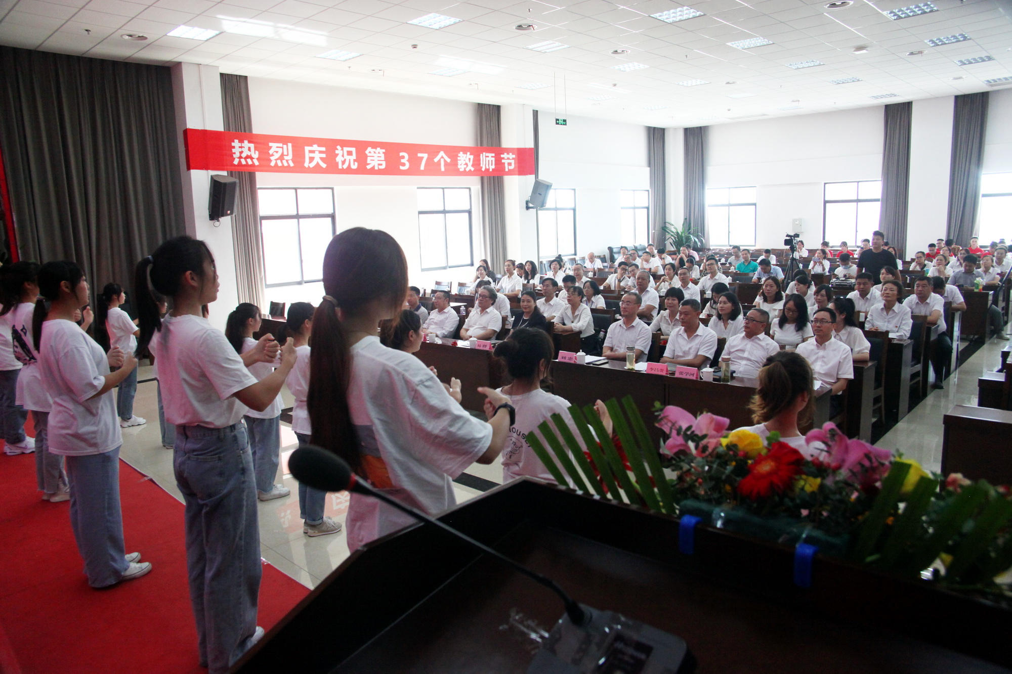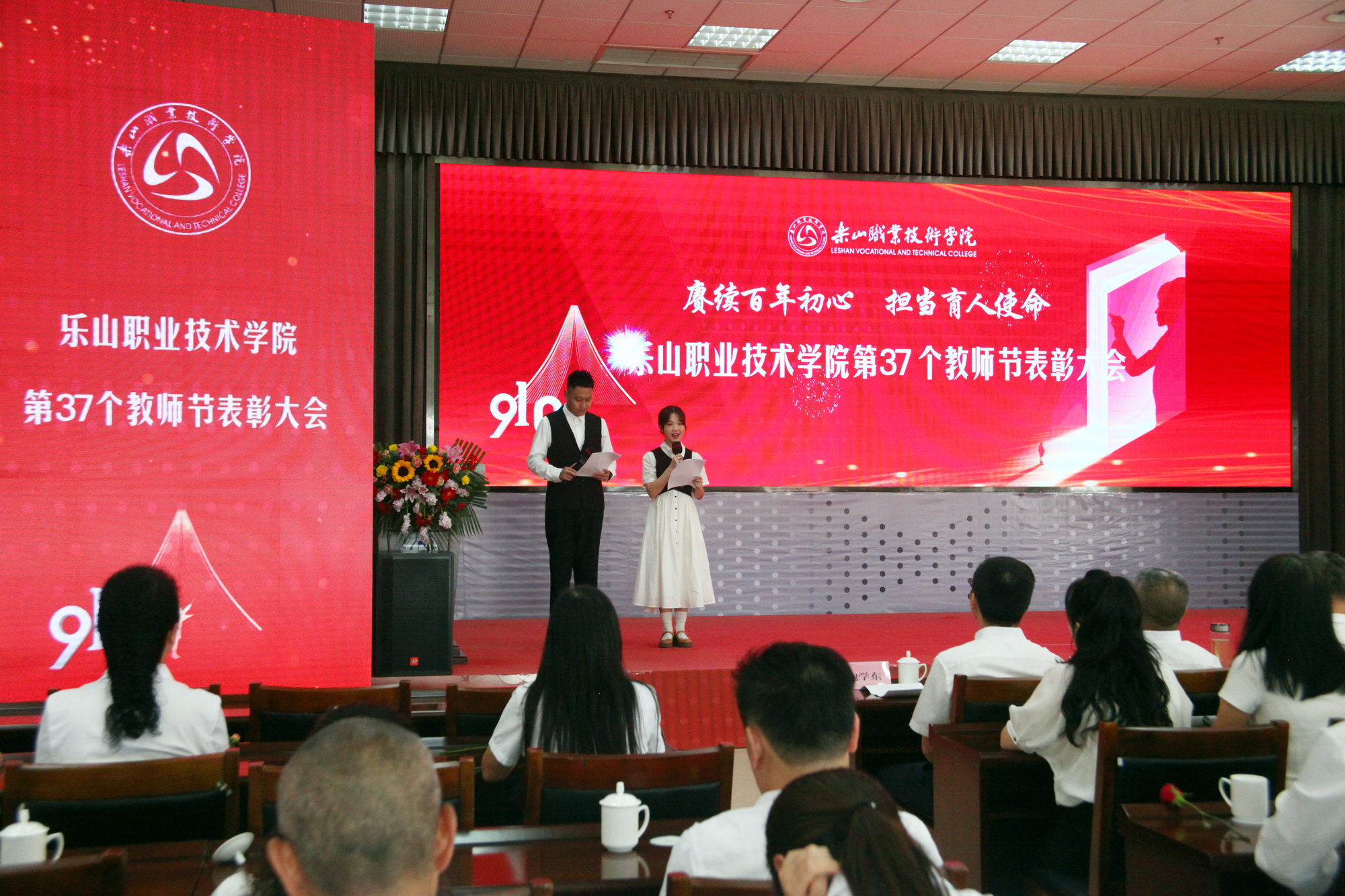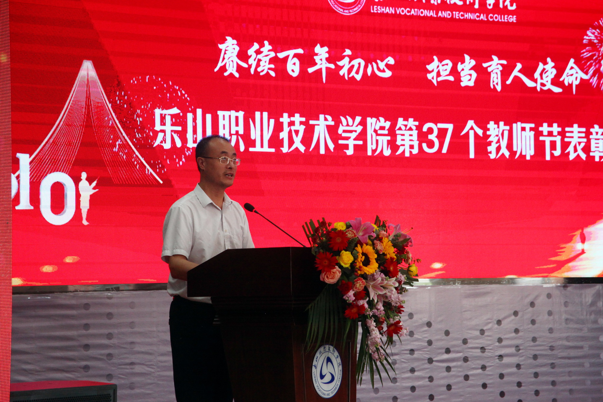 沐浴着初秋的微风,品味着金桂的芬芳,9月10日下午两点,sunbet申搏官方网站庆祝第37个教师节表彰大会在学术交流中心隆重举行。学校领导易群、刘忠、陈芝海、李昌贵、陈元进、张学河、封家福、鲍学东及各处室、系部的主要负责人、教师代表、退休教师代表出席了大会。会议现场通过网络同步直播供全院师生在线观看。