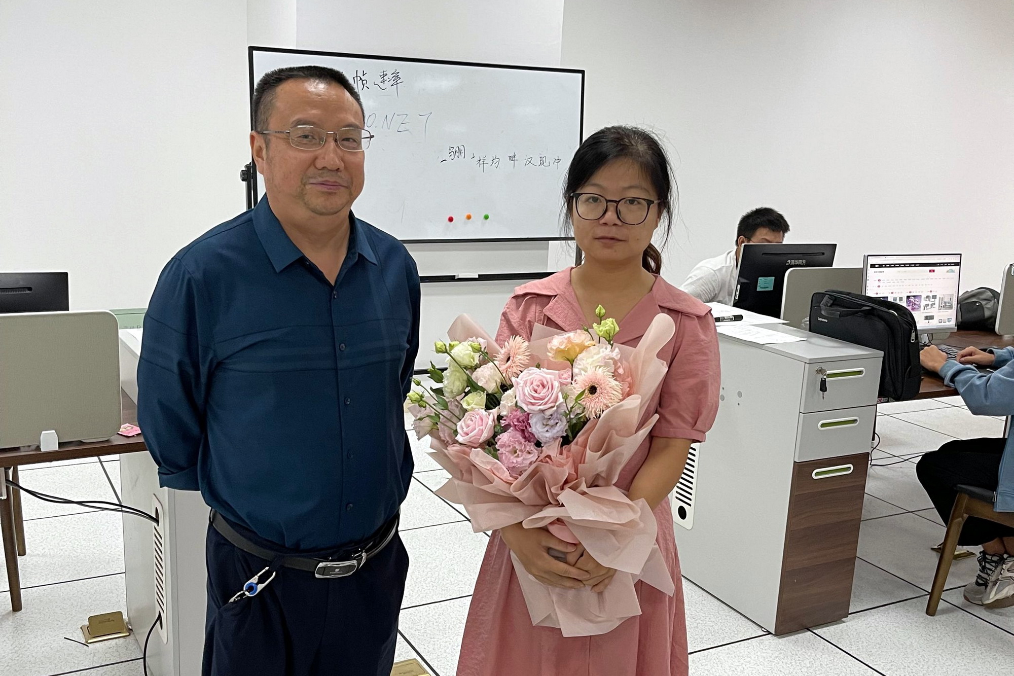 今年是第三十七个教师节,学院教师陆陆续续收到了一份特别的教师节礼物——一束鲜花和院领导暖心的问候。学院领导纷纷走进了课堂,为一线教师送上节日祝福和鲜花。一次看似简单的送花仪式,带给教师们的不仅是自我价值感的体现,更是乐职院大家庭对默默坚守在教育事业一线的教师们的关怀和温暖。