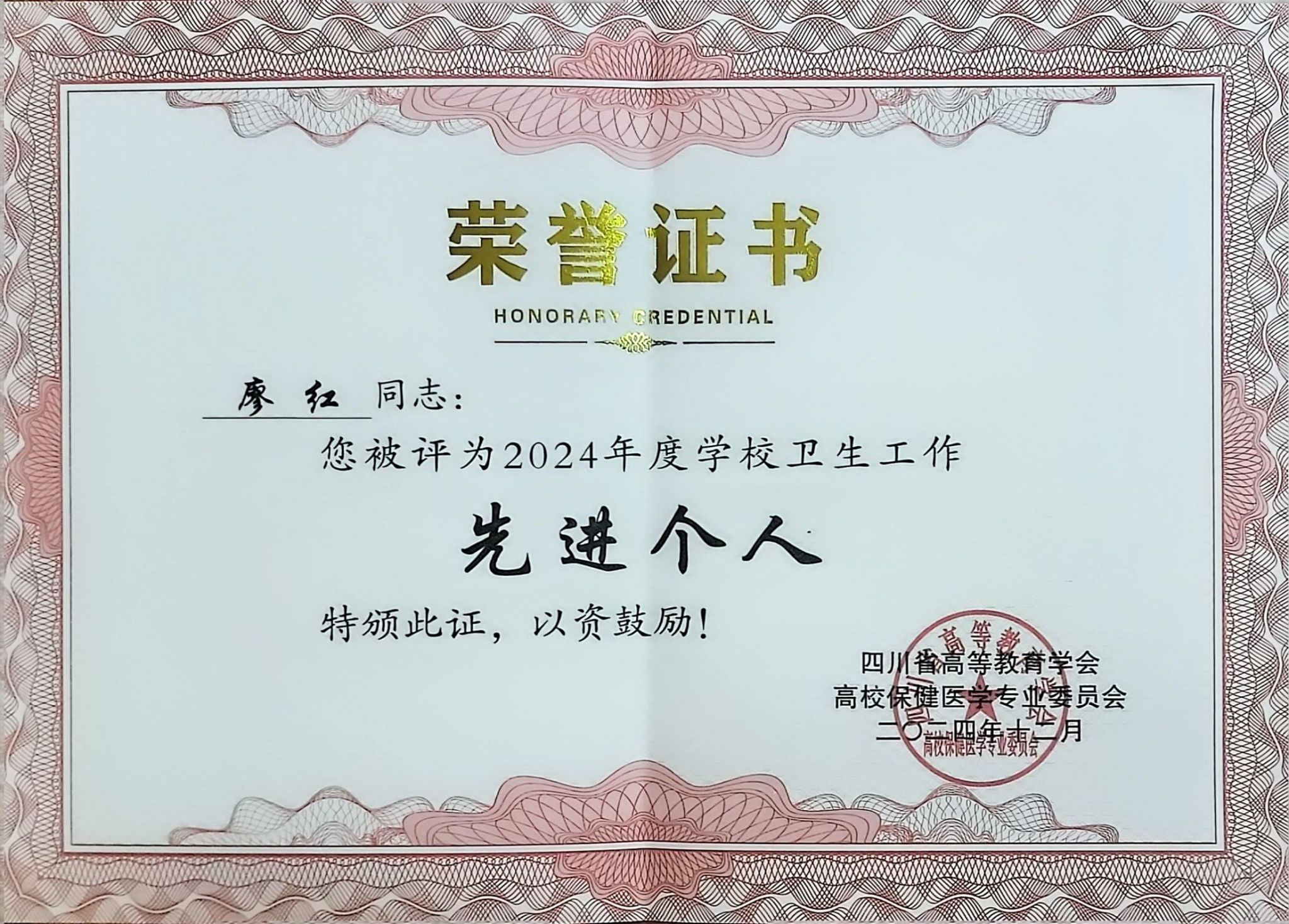 近日,四川省高等教育学会高校保健医学专业委员会对四川大学、电子科技大学等全省29所高校授予“2024年度学校卫生工作先进单位”,并对32名“2024年度学校卫生工作先进个人”予以表彰。sunbet申搏官方网站荣获“2024年度学校卫生工作先进单位”,廖红荣获“2024年度学校卫生工作先进个人”。