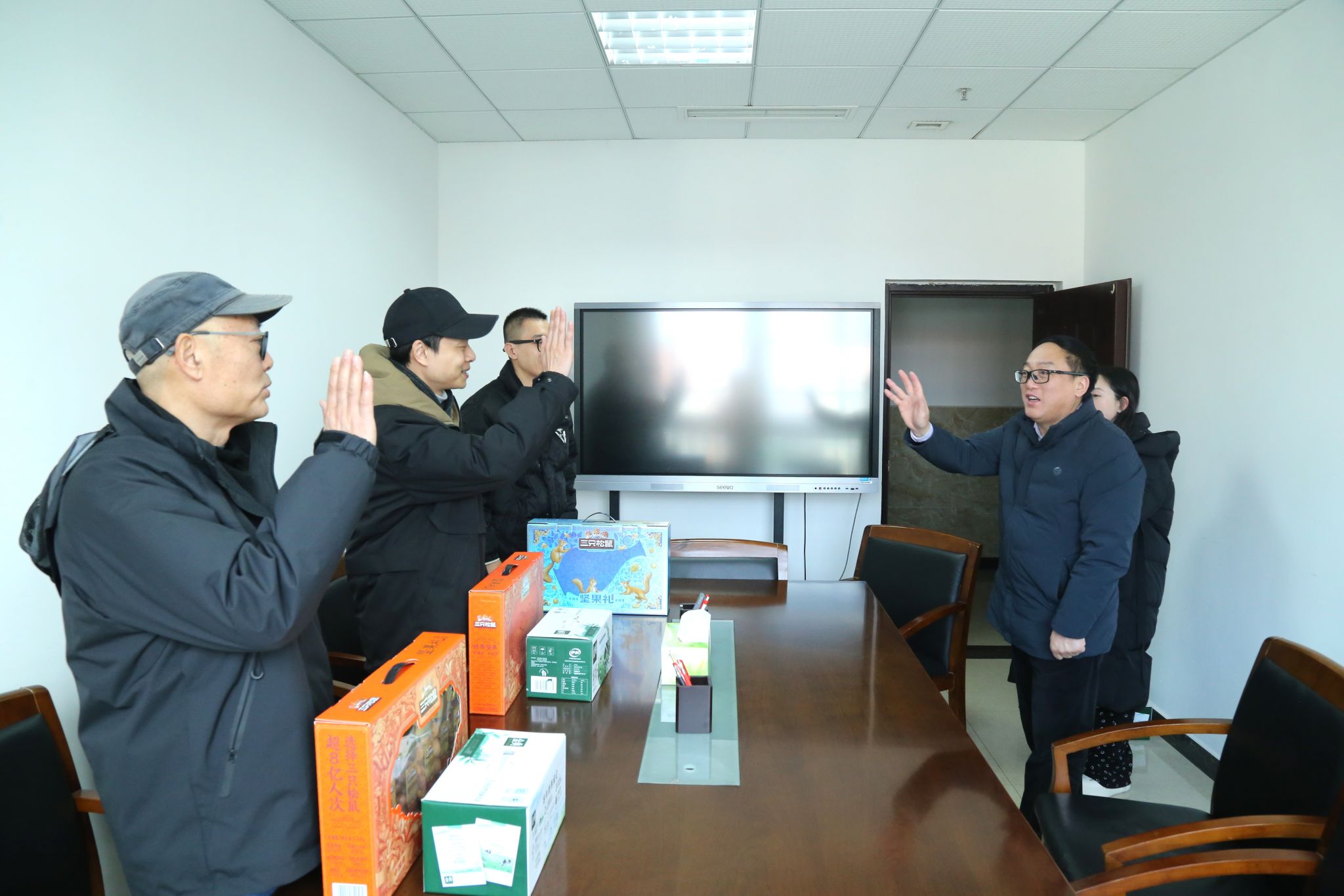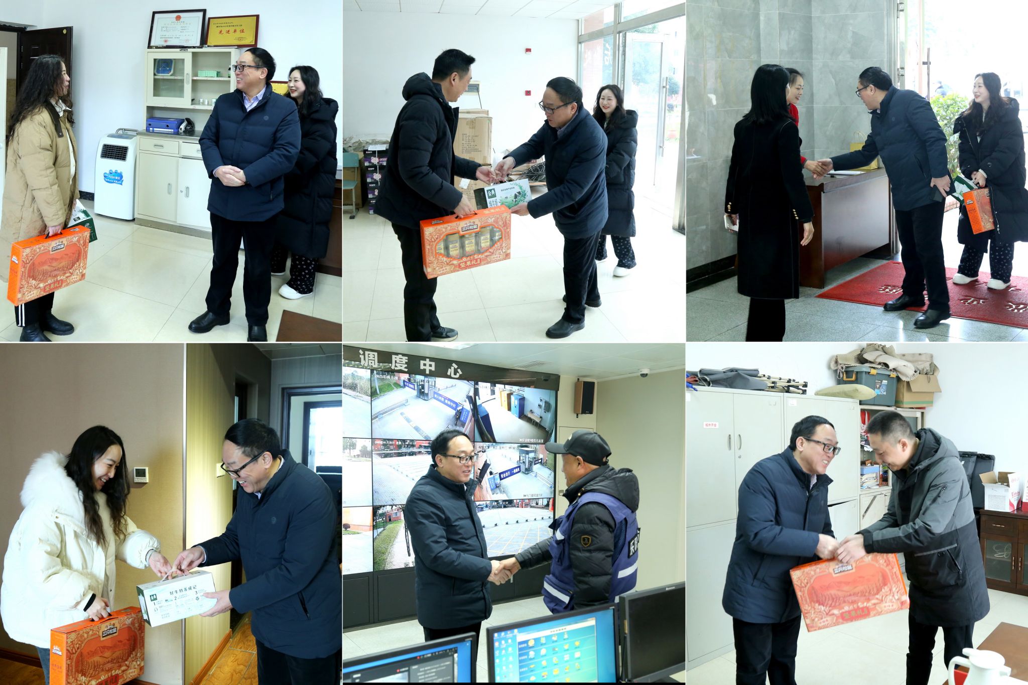 2025年1月28日,农历除夕,学校党委书记成定彬带队看望慰问春节期间仍坚守在一线的值班值守工作人员,党政办、宣传部相关人员参加。