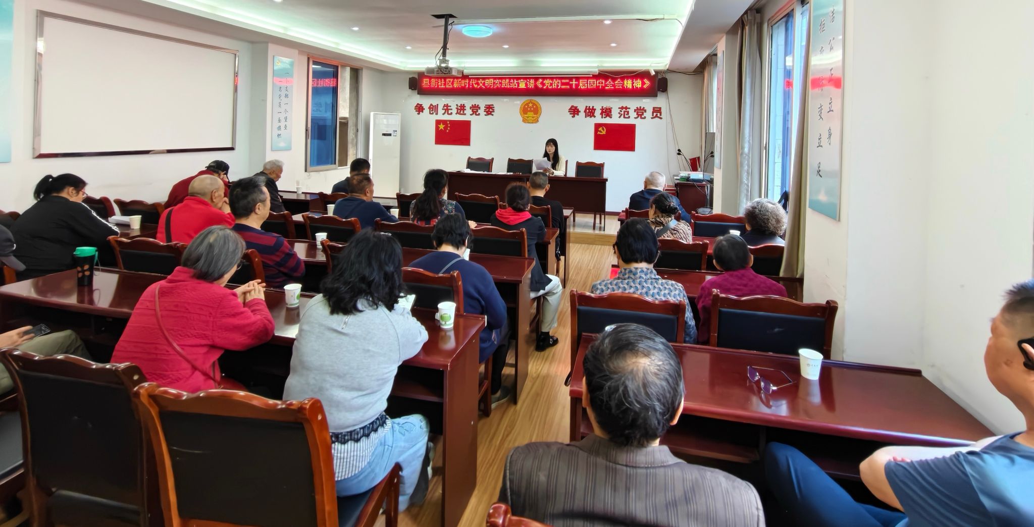 4月15日,马克思主义学院教师余霄受邀前往县街社区,为社区党员干部开展《深入学习贯彻党的二十届四中全会精神,以党建引领基层治理现代化》专题宣讲活动,共计35人参加。