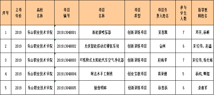 根据《四川省教育厅办公室关于开展2019年省级大学生创新创业训练计划立项工作的通知》(川教厅办函〔2019〕21号)文件要求,经项目负责人申报,系部推荐,学院组织相关专家评审,下列5个项目拟作为我院“2019年省级大学生创新创业训练计划项目”推荐到四川省教育厅。现予以公示,公示期5天(2019年4月24日至2019年4月28日)。学院教职工若有异意,请书面向学院招生就业处、纪委实名反映。
