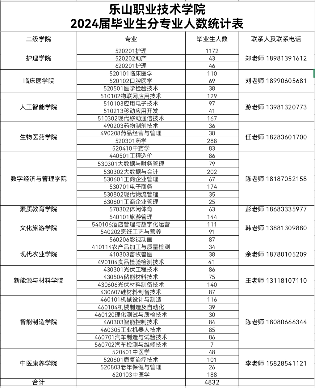 五、2024届毕业生分专业一览表