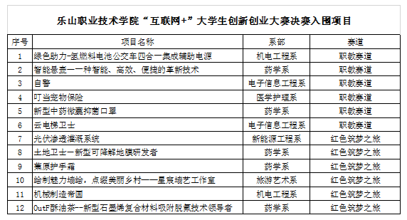 第六届“互联网+”大学生创新创业大赛决赛入围项目公示