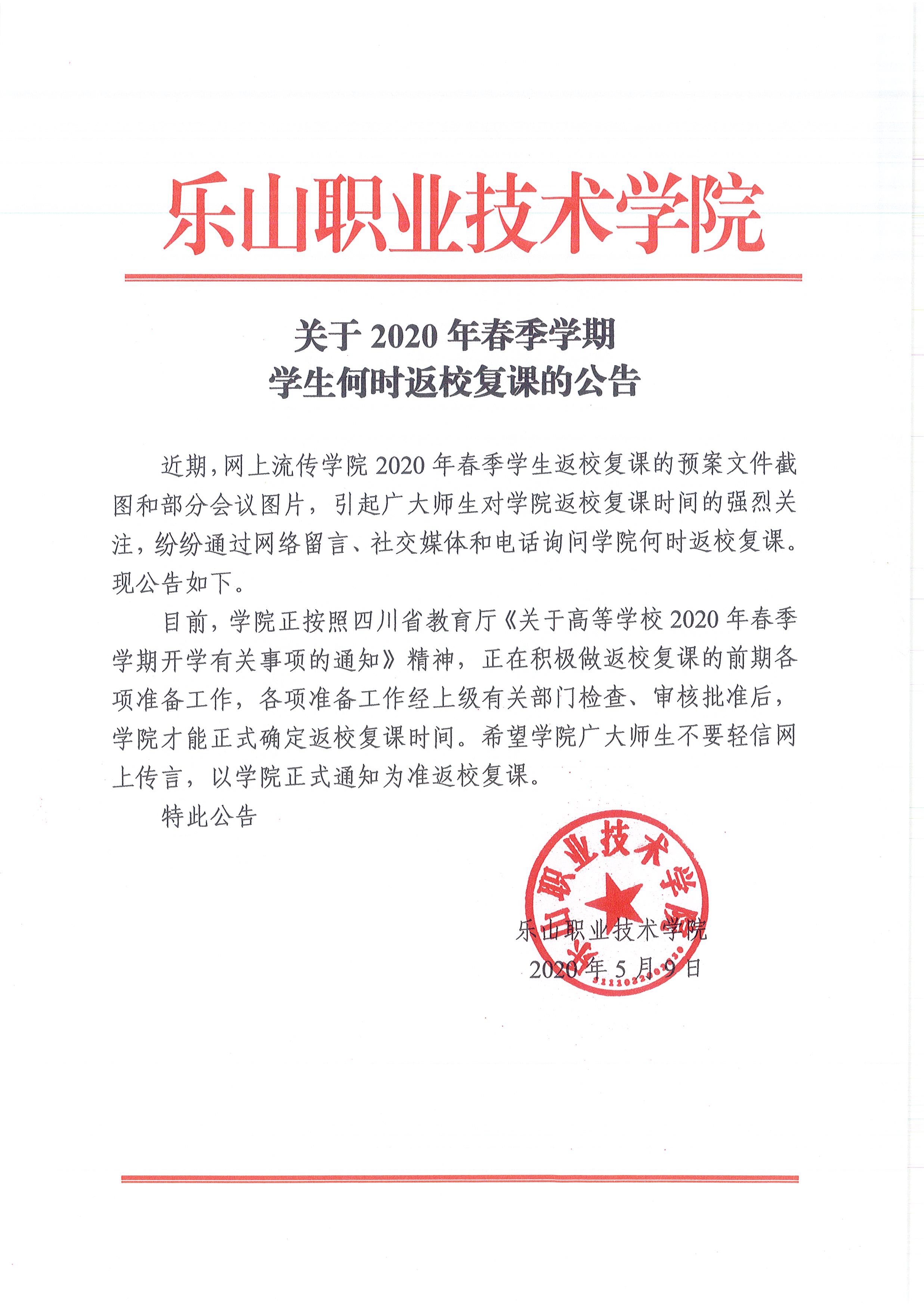 关于2020年春季学期学生何时返校复课的公告