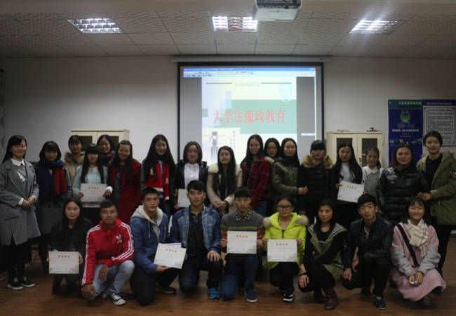 为丰富大学生的校园生活,倡导反腐反贪的政治理念,提高大学生清廉、正直的品德,增强大学生的政治素质,sunbet申搏官方网站旅游系于2015年12月2日在旅游社实训室举办了大学生廉正教育ppt演讲比赛。到场的评委分别有团委老师鲜梦玲老师,团委副书记伍黄琴,还有宣传部部长刘欢、副部长蒋雷,来自大一各班的22名同学参加演讲比赛 。