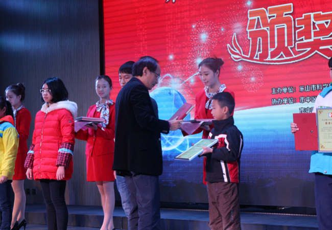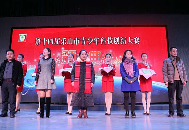 在颁奖典礼中的也表现的从容自如,微笑面对,丝毫不怯场,大展了我们旅游系的风采,得到了乐山市科协的大力赞扬。
