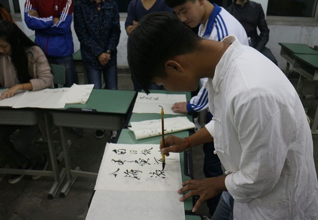 为了弘扬书法艺术,营造浓厚的校园文化氛围。旅游系于2015年11月10晚6点半在15级旅游二班教室开展了“校园书法大赛初赛”。大一、大二喜爱书法的同学踊跃参与。
