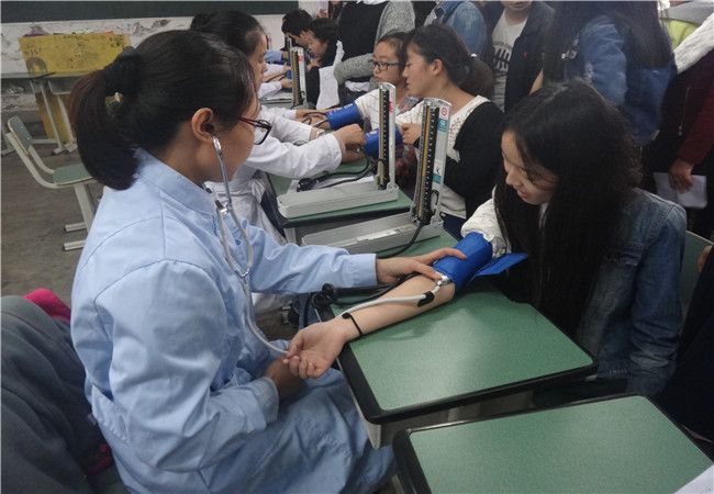 为做好2015年秋季入学新生预防性健康体检工作,了解学生的健康情况,做到有疾病“早发现,早预防,早治疗”,为此,我院护理系师生于2015年11月11日下午在新村校区为旅游系和财经系新生统一进行入学体检。