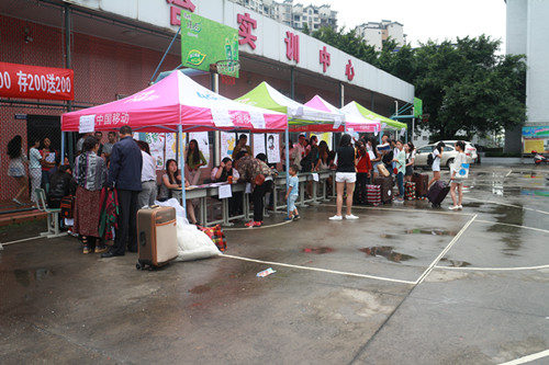 丹桂飘香季,新生报到时。2015年9月9日,sunbet申搏官方网站旅游艺术系于早上8点开始了2015级新生报到工作。本次迎新工作的地点主要是在斑竹湾校区、新村校区和各个汽车站。