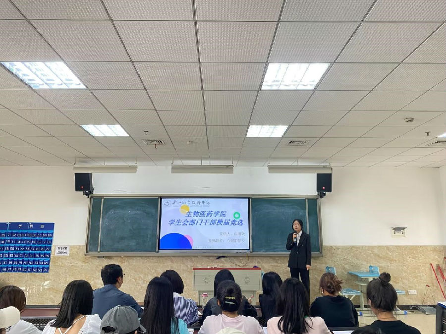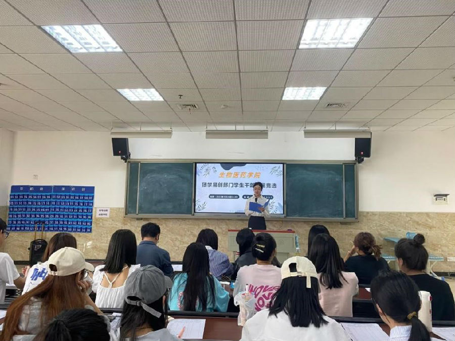 为加强学生干部队伍建设,发挥学生自我管理、自我教育、自我服务的作用,生物医药学院于2023年5月26日下午13时在2C301召开2022级团学易创学生干部换届竞选。本次竞选的评审团由生物医药学院专职副书记黎缘、学生科科长张俊、分团委书记朱晓琴以及现任团委学生会干部组成。